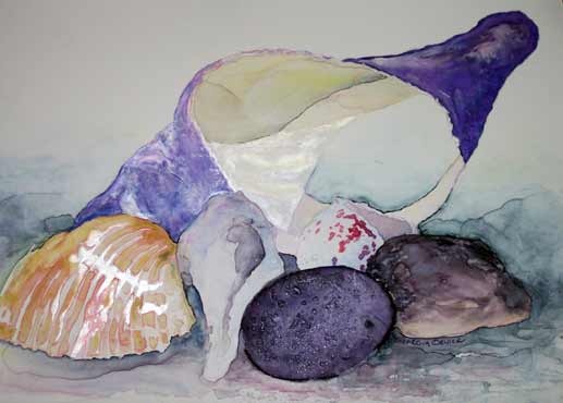 Broken Shell Still Life [watercolor and acrylic on Yupo paper]