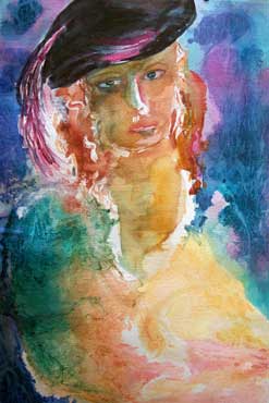 Pink Feathered Hat [watercolor and acrylic on paper]