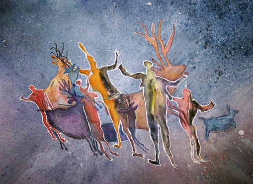 Spirits Of The Cave [watercolor and acrylic on paper]